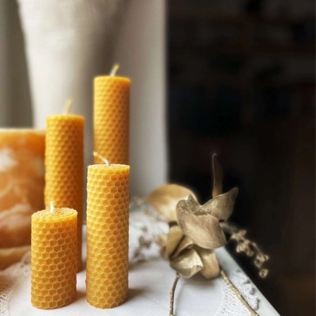 Voštinové svíčky jsou vyrobeny ze 100% čistého včelího vosku. Krásně voní po medu, při hoření nevznikají a neunikají toxické zplodiny jako u svíček parafínových a vydrží déle hořet.